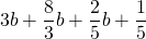 3b+\dfrac{8}{3}b+\dfrac{2}{5}b+\dfrac{1}{5}